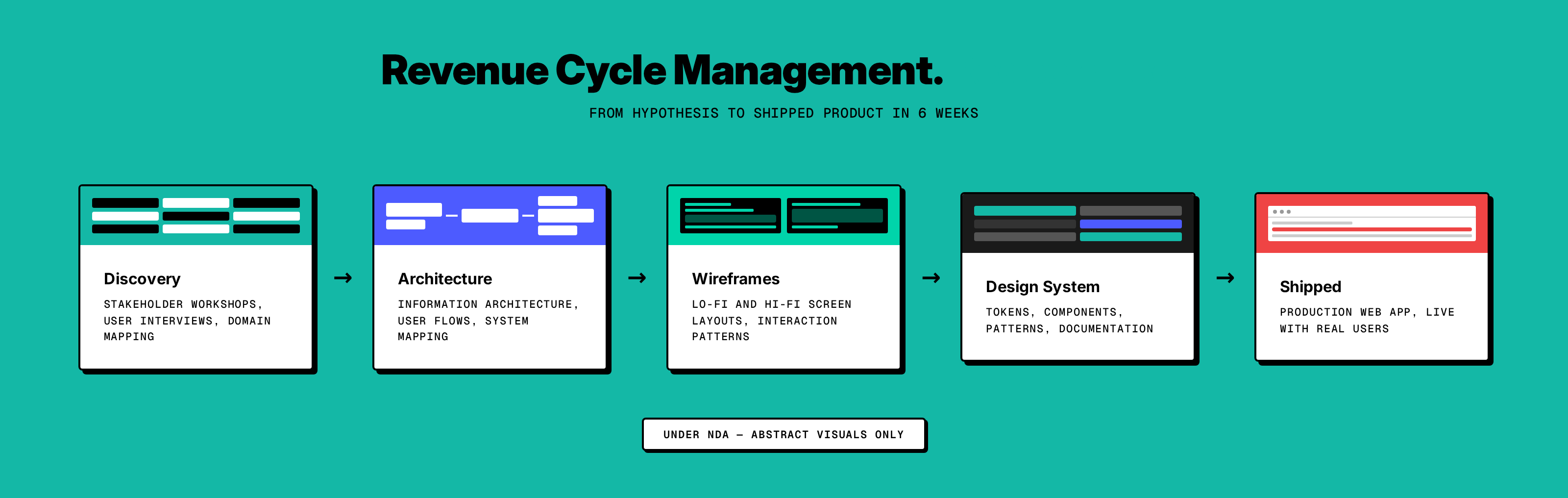 “Full design ownership on a healthcare startup. Discovery workshops through to production web application.”